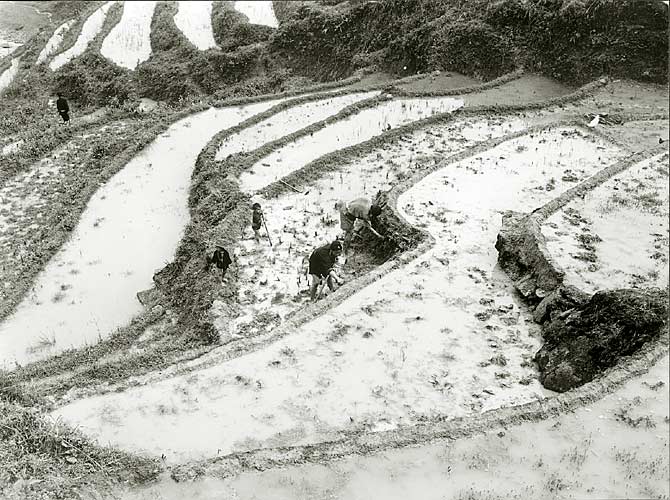 Hanoi. Up in the mountains the beautiful rice-fields are still there, in the