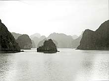 Halong-Bay the fishermen still live as before between the beautiful Halong